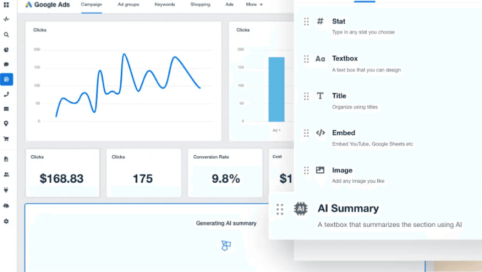 use AI to generate a report by entering a prompt.
